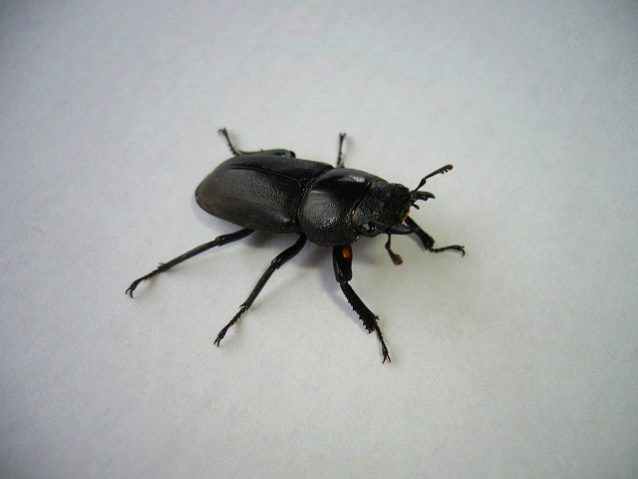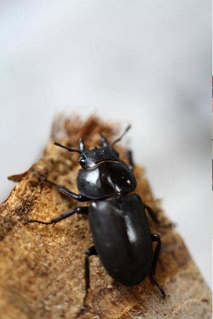 体の色は黒が基調ですが、少し赤味を帯びているものもあります。オスは真っすぐに伸びた細い大あごが特徴的で、その姿形はシンプルでありながら均整の取れた美しさがあります。