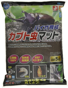 一昔前は園芸用の腐葉土やオガクズを深く敷き詰め流用していました。成虫飼育用の床材はダニやコバエ…その他害虫が発生する心配の少ない、市販の昆虫用マット等がお勧めです。(それでもモノによってはコバエやミミズが発生することがあります。)