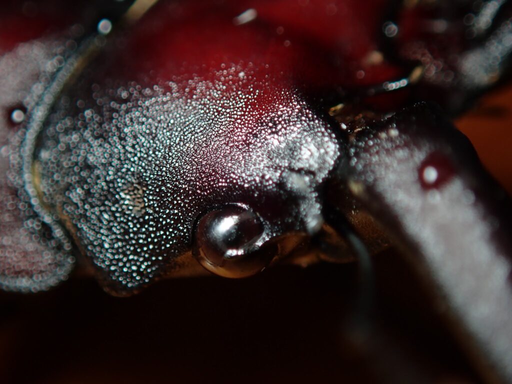 クワガタの顔をじっくり観察される方は少ないと思いますが、よく見ると眼球に一本の突出している線のようなモノが確認できます。