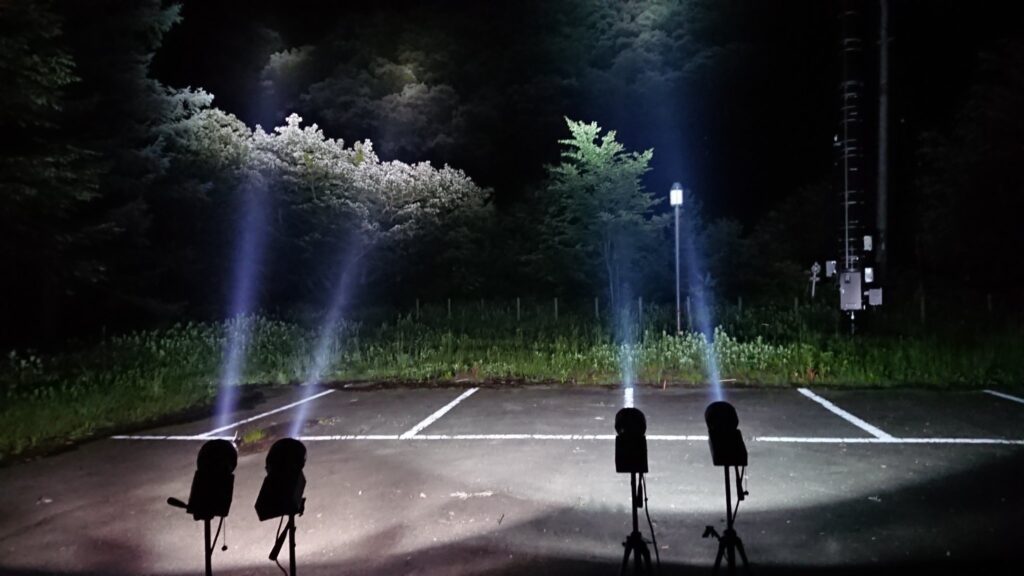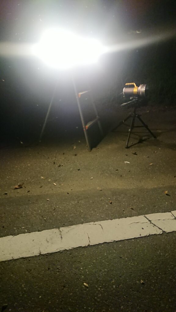 強力なライトを用いるため、周りに迷惑がかからない場所で行います。また、例え周りに人が誰も居なくても、実施場所によっては許可が必要な場合があります。